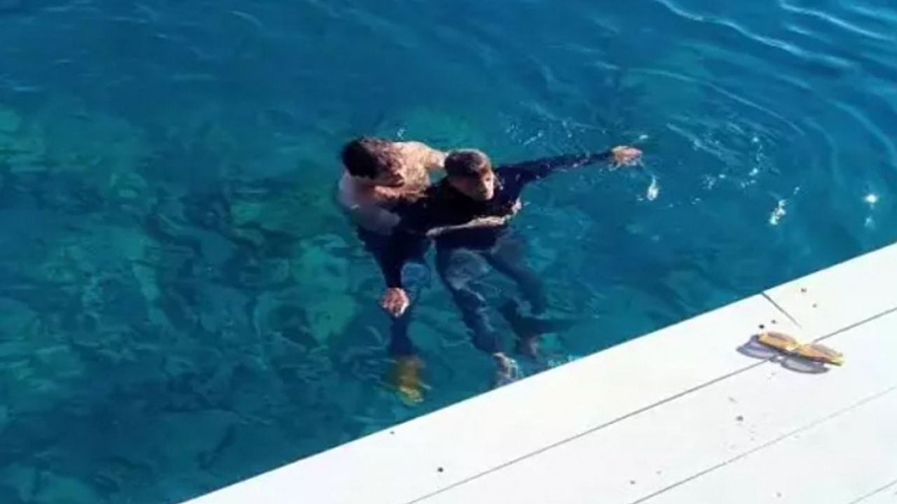 Muğla'nın Bodrum ilçesinde, ailevi sorunları nedeniyle ayağına kum torbası bağlayıp denize atlayan Şeref B.'yi gazeteciler kurtardı. Durumunun iyi olduğu belirten Şeref B., ifadesi için polis merkezine götürüldü.