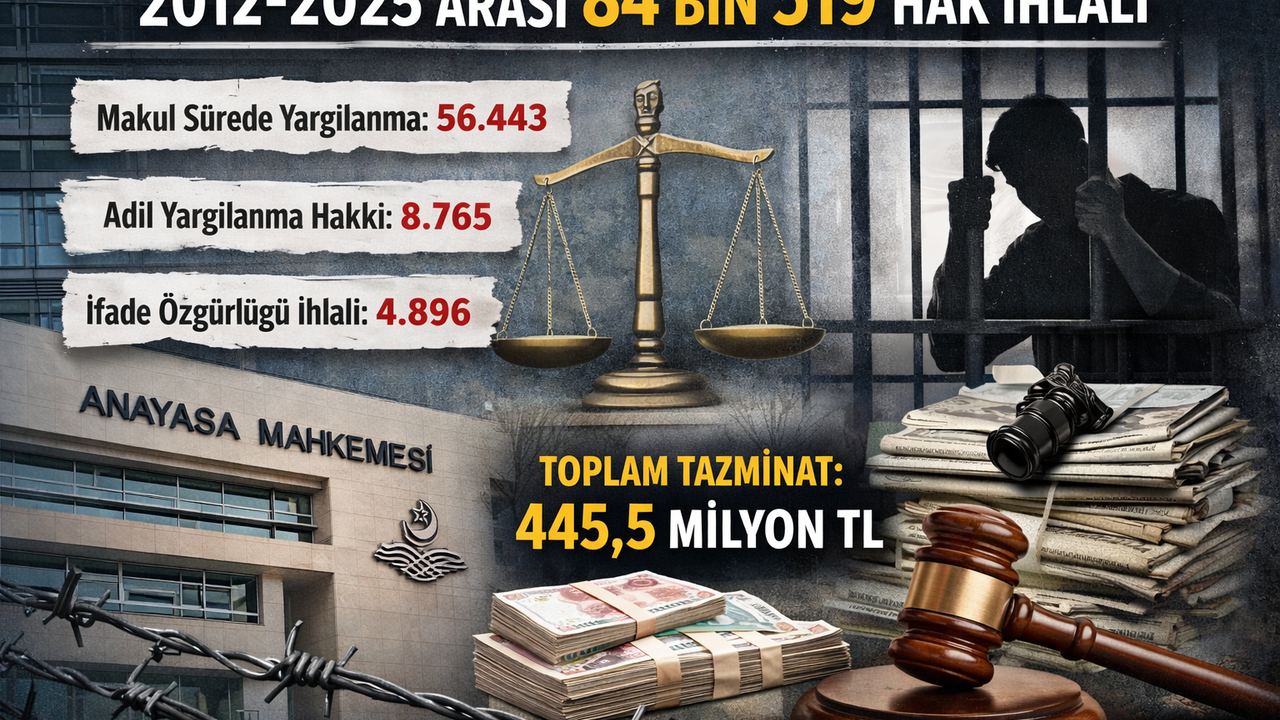 Hak ihlallerinin yalnızca hukuki değil ekonomik sonuçları da dikkat çekiyor. AYM’nin 2018-2025 dönemine ilişkin verilerine göre, ihlal kararları sonucunda hükmedilen toplam tazminat tutarı 445,5 milyon TL oldu. Bu rakam, kamu bütçesine doğrudan yansıyan yükü ortaya koydu.