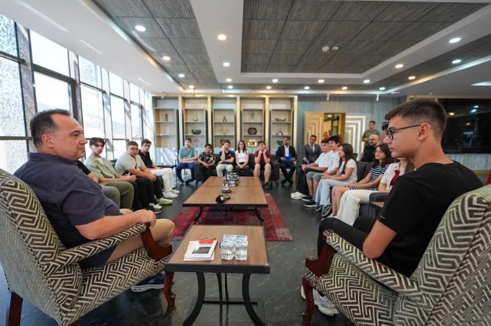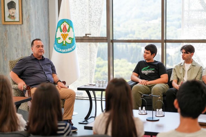 Manisa Büyükşehir Belediye Başkanı Besim Dutlulu, Manisa Büyükşehir Belediyesi Eğitim Merkezi’nde (MABEM) aldıkları eğitim ile Liselere Giriş Sınavı’nda (LGS) dereceye giren 15 öğrenciyi makamında ağırladı. Manisa Büyükşehir Belediyesi Genel Sekreter Yardımcısı Ulaş Aydın ve Halk Eğitim Şube Müdürü Serap Gücüyen’in de eşlik ettiği ziyarette Başkan Dutlulu, öğrencilerle tek tek sohbet ederek, tebrik etti. Başkan Dutlulu, “Zorlu bir yılın ardından elde ettiğiniz bu güzel başarı, gerçekten takdire şayan. Bu süreçte öğretmenlerimizin ve MABEM’in katkısı çok büyük, ancak en büyük pay hiç şüphesiz sizlerin ve fedakâr ailelerinizindir. Ailelerinize de tebriklerimi ve selamlarımı iletin. Bir yıl boyunca azimle çalışarak bu başarıya ulaşmanız büyük bir gurur kaynağı. Dilerim ki aynı azimle hayallerinizin peşinden giderek onları da gerçeğe dönüştürürsünüz. MABEM, Ferdi Başkanımız döneminde de önemli işlere imza attı.