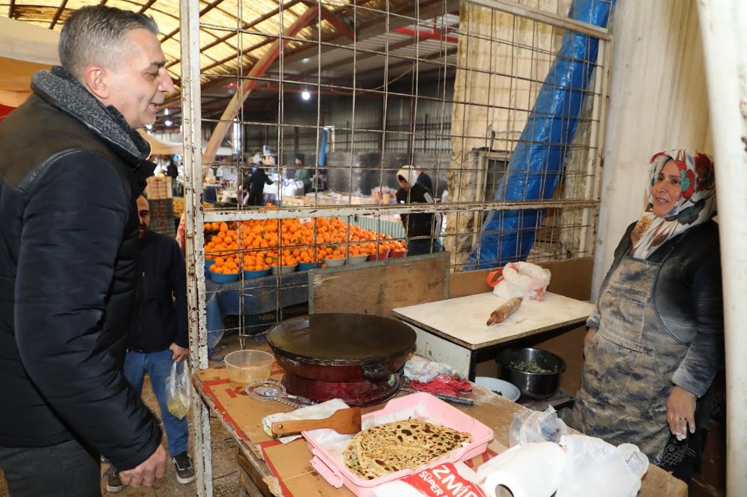 Sabahın erken saatlerinde pazaryerini ziyaret eden Başkan Şimşek, tezgâhları tek tek gezerek pazarcı esnafıyla sohbet etti, talep ve önerileri dinledi.