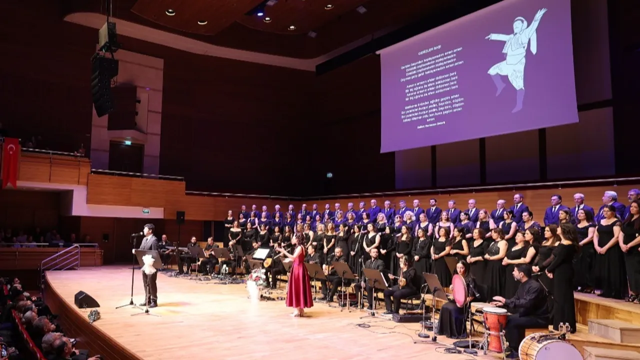 İzmir Büyükşehir Belediyesi Türk Halk Müziği Korosu, AASSM'de şef Öznur Korkmaz yönetiminde, 'Anadolu'nun Rengi Köklerin Sesi' adlı konser düzenledi.