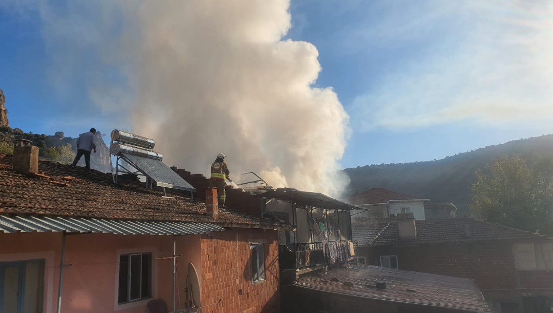 Osman Kahraman’a ait evde henüz belirlenemeyen bir nedenle çıkan yangın, kısa sürede büyüyerek çatıyı sardı.