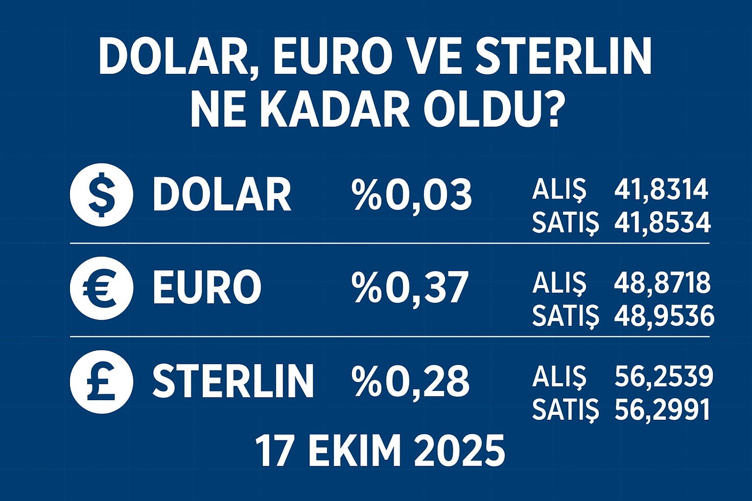 Güncel Döviz Kurları (17 Ekim 2025 Cuma Sabahı İtibarıyla)