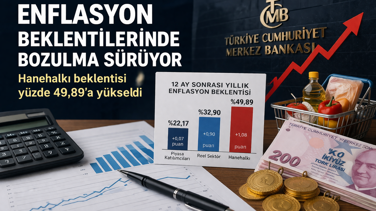 Ankete göre, 12 ay sonrası yıllık enflasyon beklentisi piyasa katılımcıları için bir önceki aya kıyasla 0,07 puan artarak yüzde 22,17’ye yükseldi. Reel sektörde bu artış 0,90 puan olurken beklenti yüzde 32,90 seviyesine çıktı. En dikkat çekici yükseliş ise 1,08 puanlık artışla hanehalkında yaşandı ve beklenti yüzde 49,89’a ulaştı.