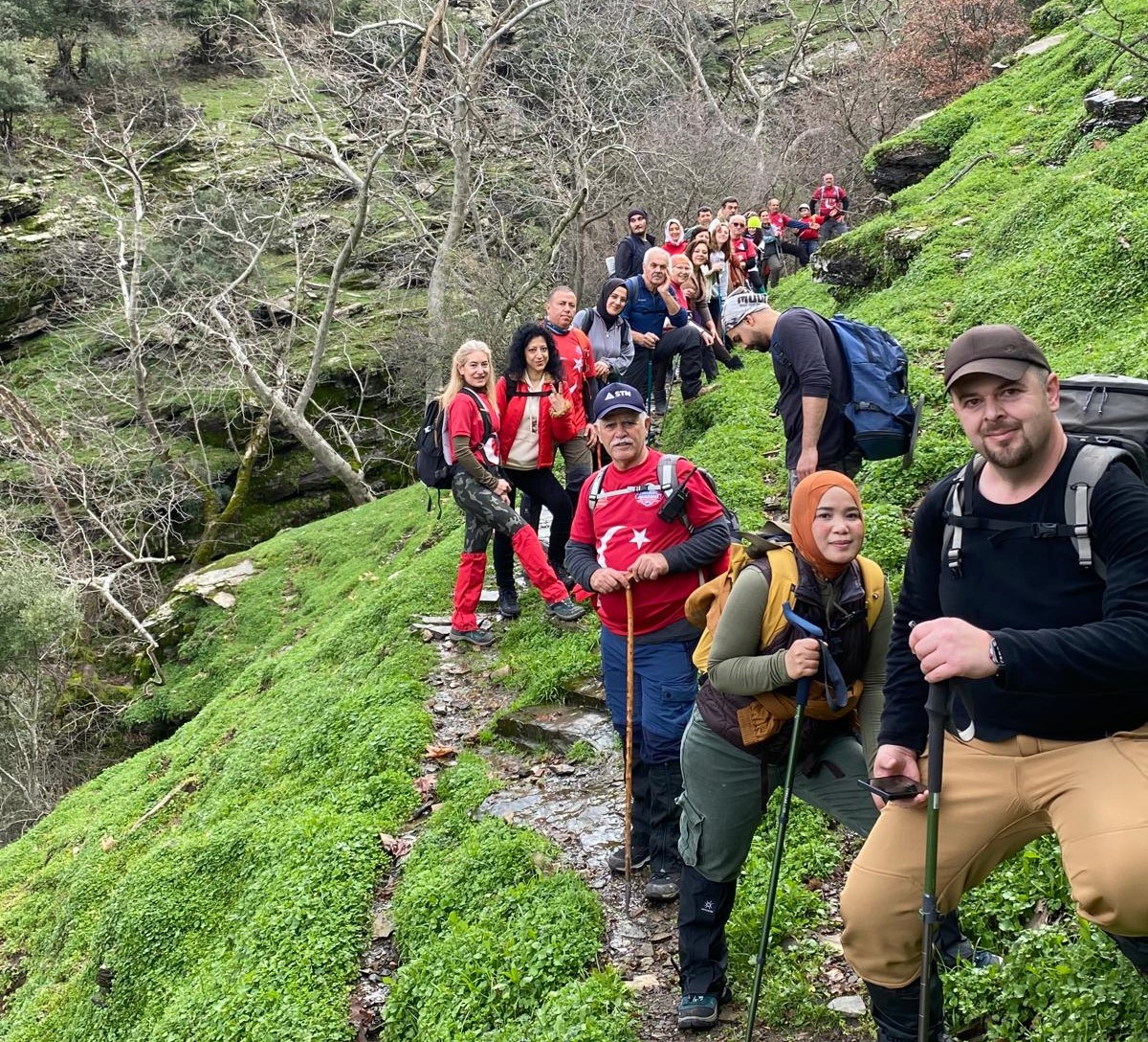 Turgutlu Belediyesi Kültür ve Sosyal İşler Müdürlüğü bünyesindeki TURBELDAK bu haftaki doğa yürüyüşü etkinliğini Bağyurdu – Zeybekpınarı parkurunda gerçekleştirdi. Yaz Kış Yürüyüş Lideri Orhan Mert’in sevk ve idaresinde, Hasan Baykal ve Bayram Ali Çelikten rehberliği ile artçılığında yapılan yürüyüş Bağyurdu’ndan başladı. Çınar ve çam ağaçlarıyla kaplı orman içi patikalardan ilerleyen grup, doğal güzellikleriyle öne çıkan Zeybekpınarı Mevkisine ulaştı. Yaklaşık 12 kilometre uzunluğundaki parkur, dönüş saatlerinde başlayan hafif yağışa rağmen planlandığı şekilde sorunsuz ve güvenle tamamlandı.