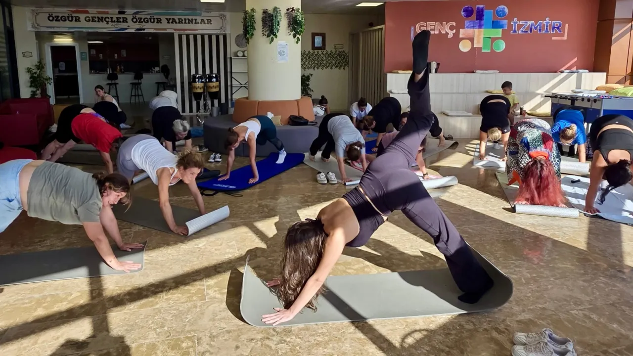 Bornova Macera Park'ta 'Yoga Saati' başlıklı ücretsiz etkinliğe katılan gençler, keyifli anlar yaşadı.