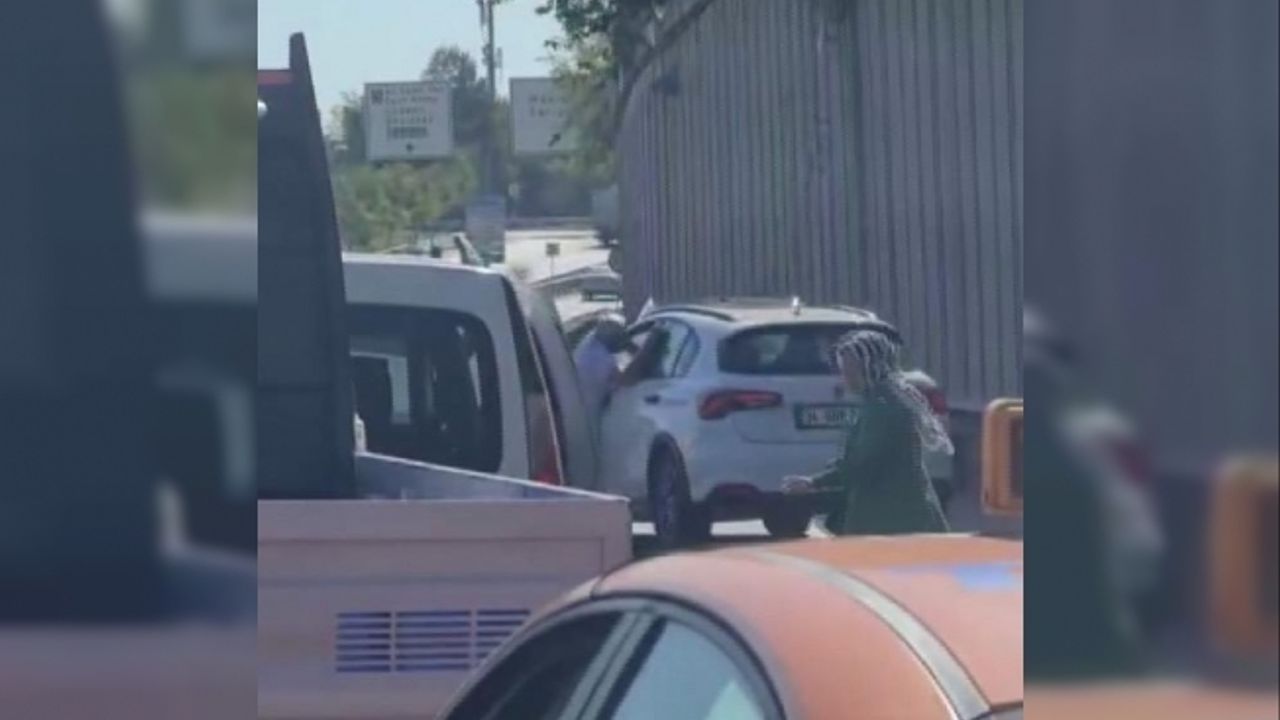 Görüntülerde, bir kişinin seyir halindeki aracın camından asılıp içerdeki sürücüyle kavga ettiği görülüyor. Bir süre sonra taraflardan biri elinde bıçakla, kolu yaralı yardım istiyor. Yaralı sürücünün, o anları cep telefonu kamerasıyla görüntüleyen başka bir sürücüye 'plakasını alır mısınız, beni cama sıkıştırdı, bıçağı zor aldım elinden' dediği görülüyor.