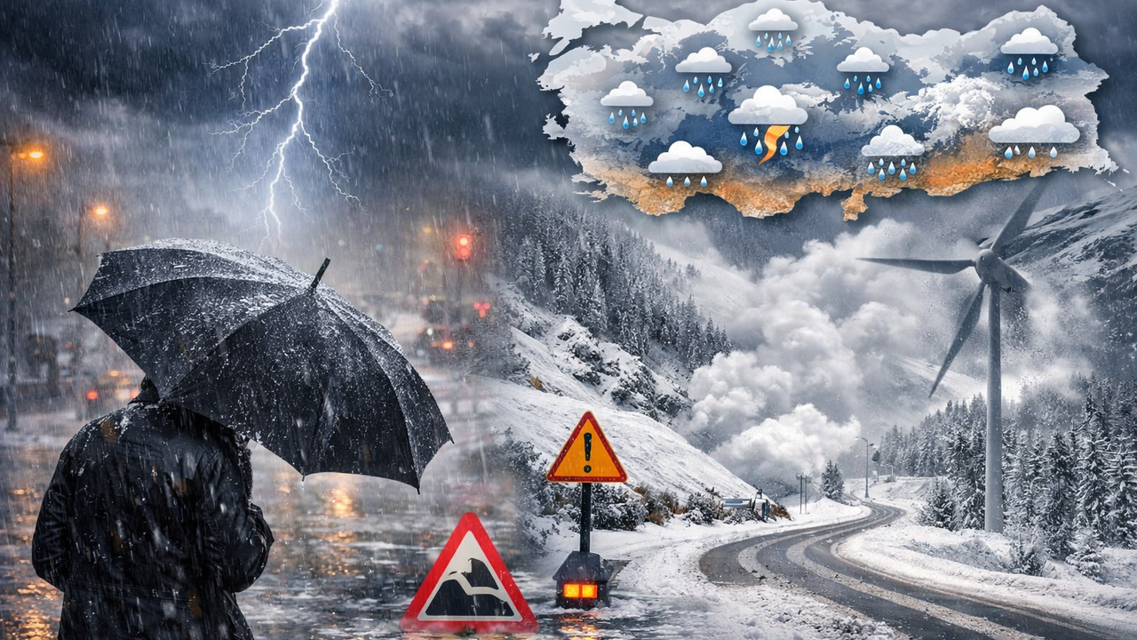 Yağışların büyük bölümünün yağmur ve sağanak şeklinde görülmesi beklenirken, bazı bölgelerde karla karışık yağmur ve kar etkisini gösterecek. Meteoroloji, kuvvetli yağış, fırtına, çığ ve buzlanma risklerine karşı vatandaşları uyardı.