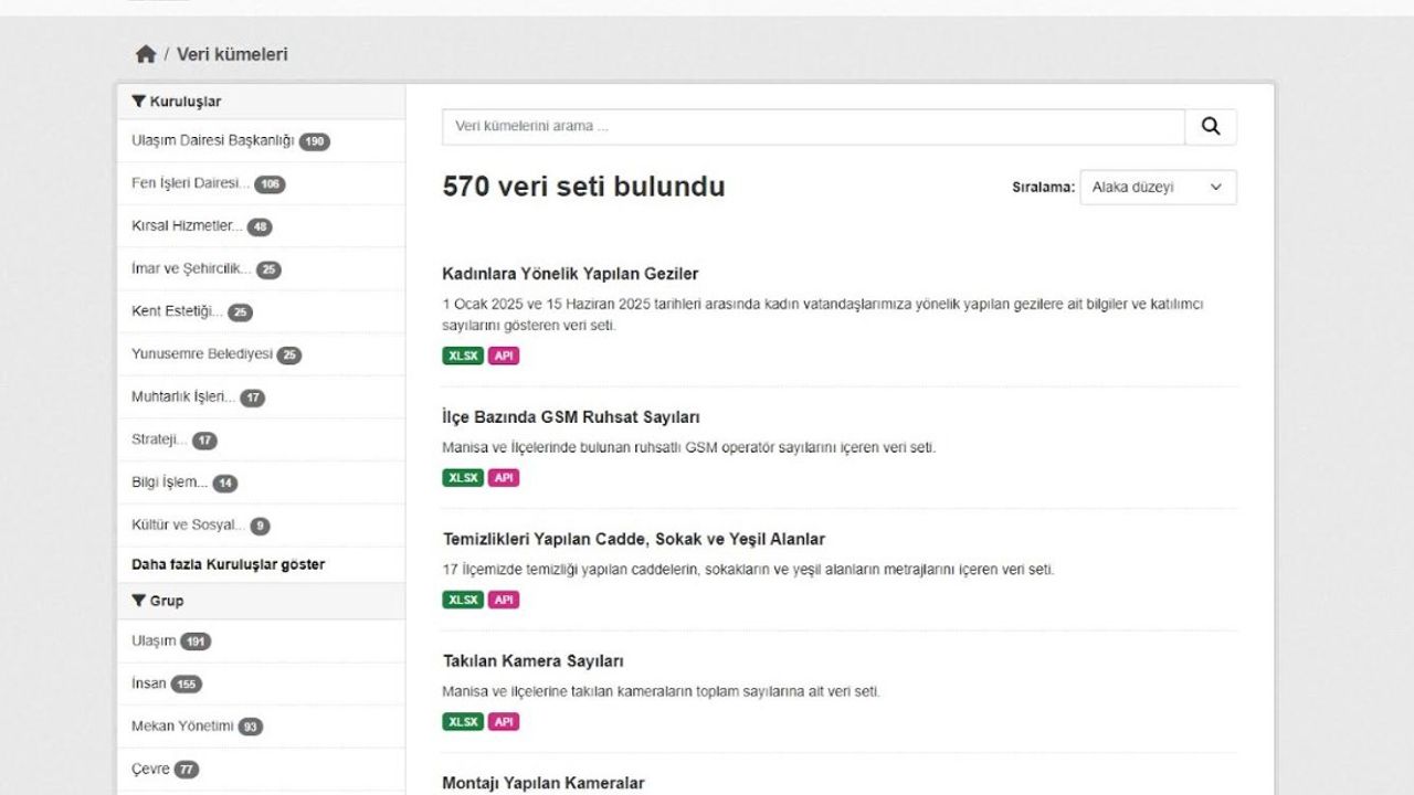 İnsan ve çevre odaklı, akıllı teknolojilerden yararlanan, yenilikçi, öncü ve sürdürülebilir Manisa vizyonu doğrultusunda çalışmalarını sürdüren Manisa Büyükşehir Belediyesi’nin faaliyete geçirdiği Açık Veri Portalı ile şehirde iş birliği ve ortak karar alma mekanizmalarının güçlendirilmesi amaçlanıyor. Akıllı Şehirler için hayati öneme sahip olan ‘açık’ ve ‘büyük’ veri; hareketlilik, günlük yaşam, eğitim, kültür sanat, çevre, sağlık, enerji, ekonomi, altyapı, bilgi teknolojileri, yönetişim (birlikte ve etkileşerek yönetim), dijital dönüşüm, afet ve acil durum yönetimi gibi alanlarda vatandaşlara, uygulama geliştiricilerine, girişimcilere, araştırmacılara ve karar alıcılara büyük fırsatlar sunuyor.