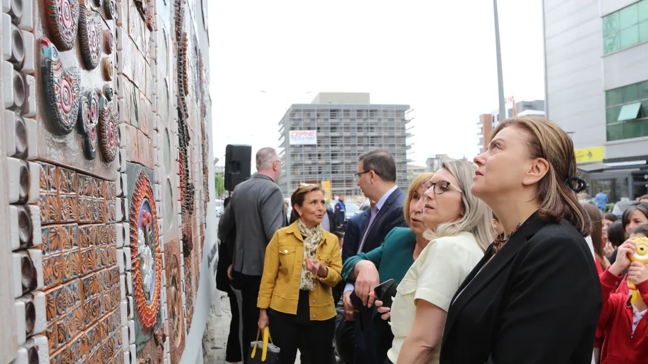 Açılışa Nilüfer Belediye Başkan Yardımcıları Okan Şahin, Şirin Arıbaş, Bukle Erman ve panonun oluşturulmasına katkı koyan öğretmenler ve öğrenciler katıldı. Okan Şahin, son seramik parçayı da koyarak panoyu tamamladı.