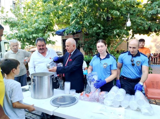 Etkinlikte Yunusemre Belediye Başkan Yardımcıları Emine Özge Arslan ve Mehmet Mesut Doğan, Barbaros Mahalle Muhtarı Siyami Alak ile birlikte mahallelilere aşure ikram etti.
